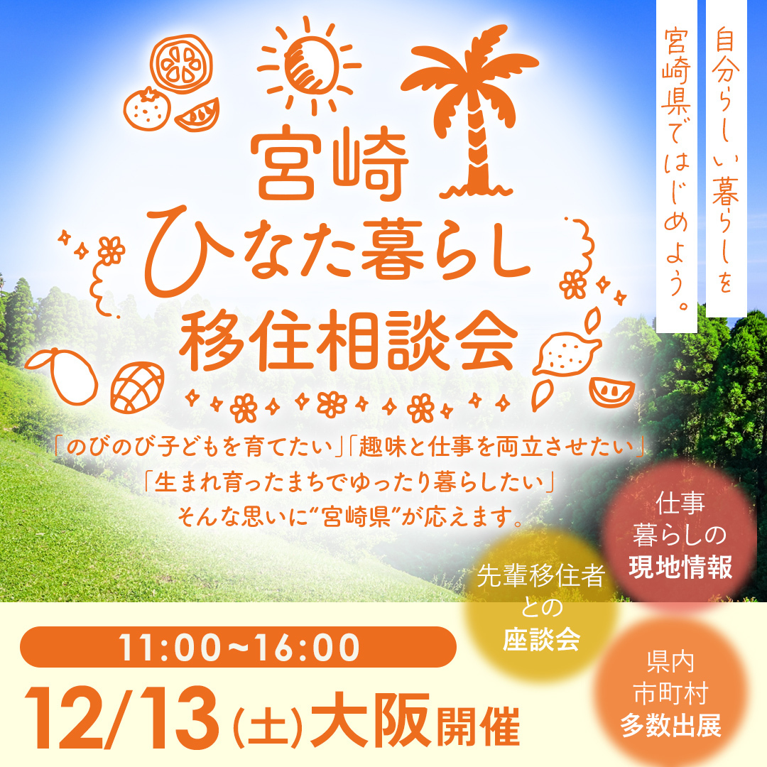 令和7年12月13日(土)に大阪で開催される宮崎県主催の移住相談会に参加します!