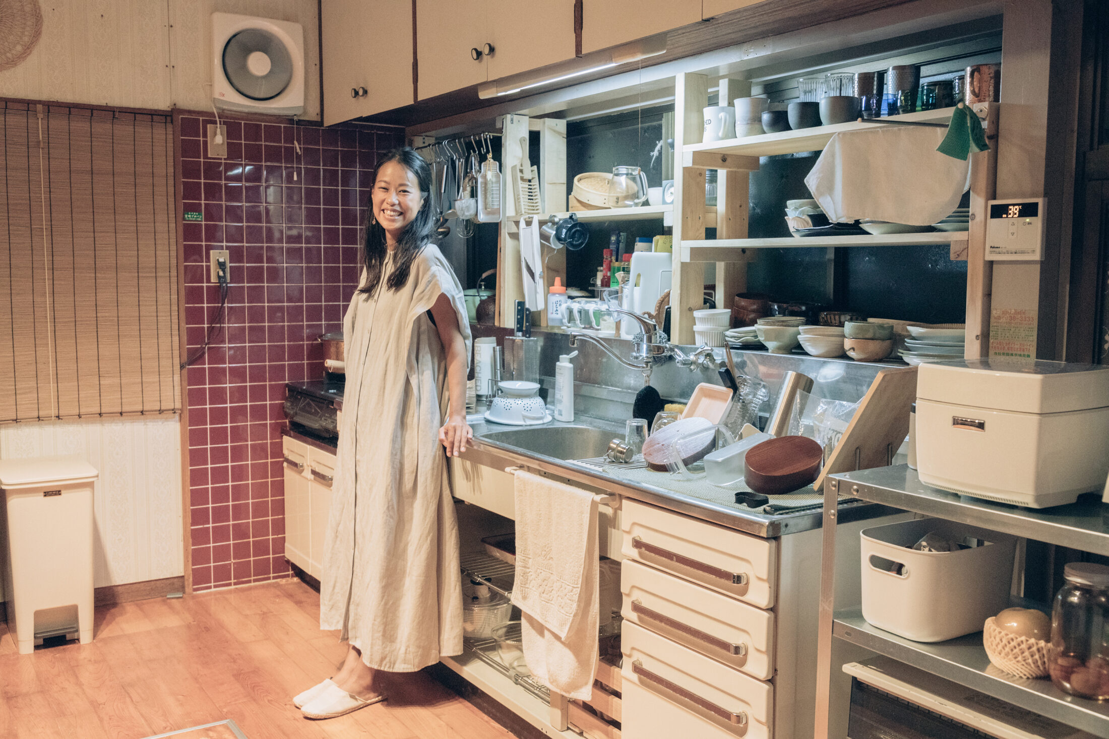 料理好きの由布さんお気に入りのキッチン。食器棚は凌希さん作